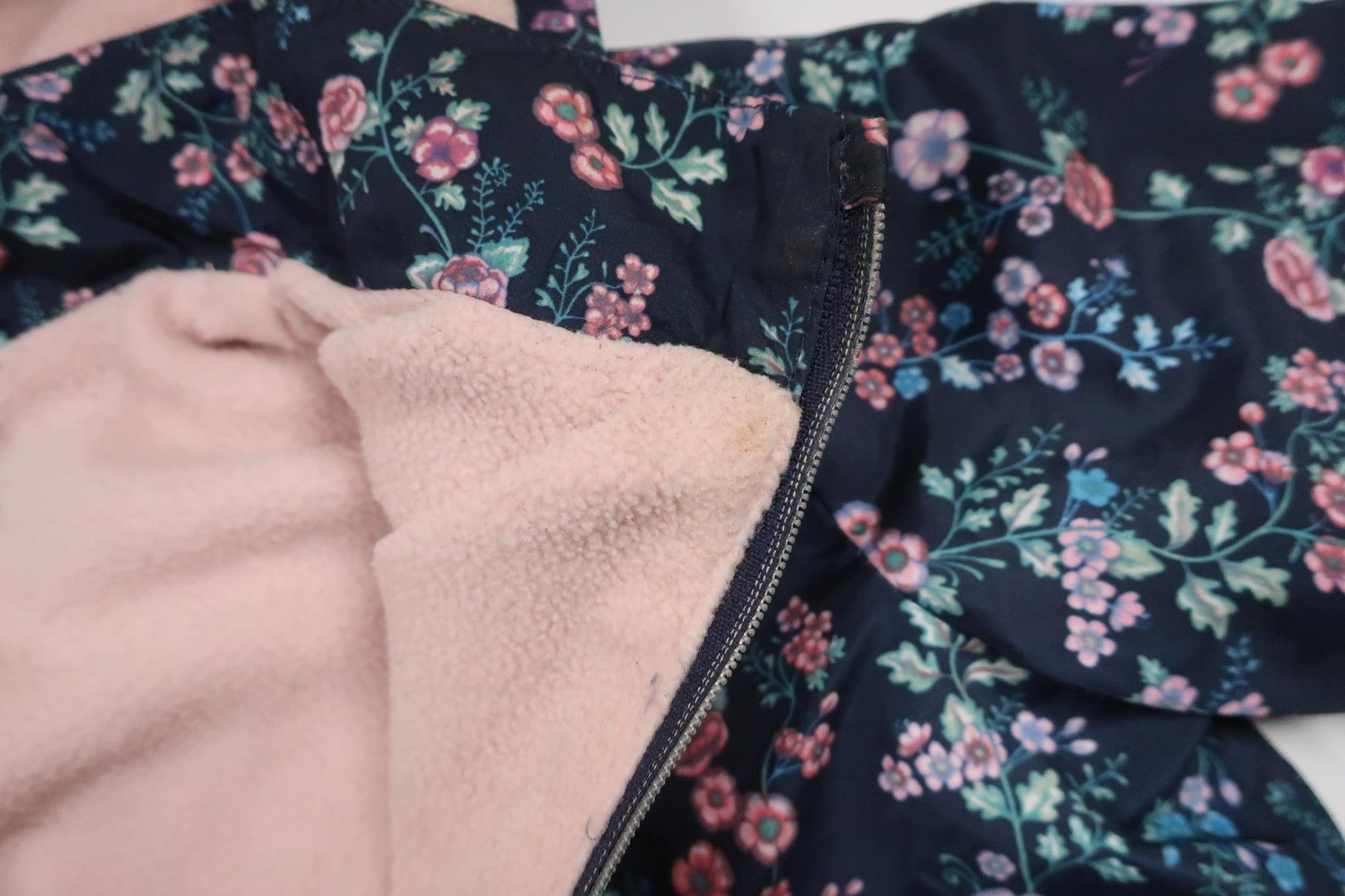Der er lidt snavs, men det ser ud til at gå af i vask, ellers i super fin stand. Fleeceforet, tyndere version.