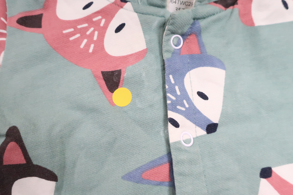 Størrelse 66, men anses for at svare til størrelse 62/68. Fleeceforet. Der er lidt snavs, men det ser ud til at gå af i vask, ellers i meget god stand.