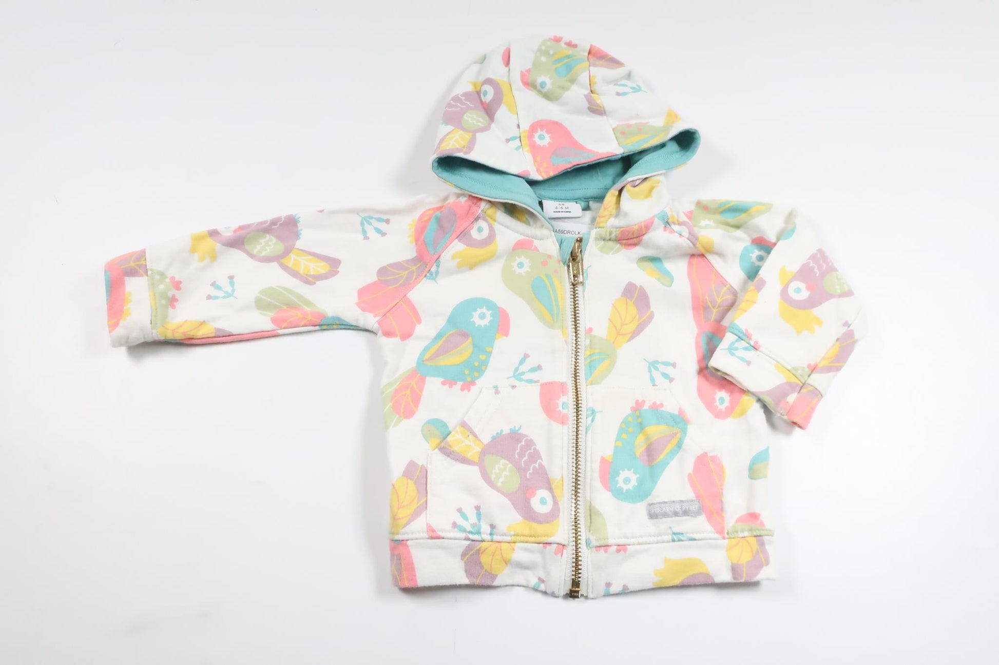 Hættejakke med fugle fra Polarn o. Pyret - Størrelse 68 - Hvid