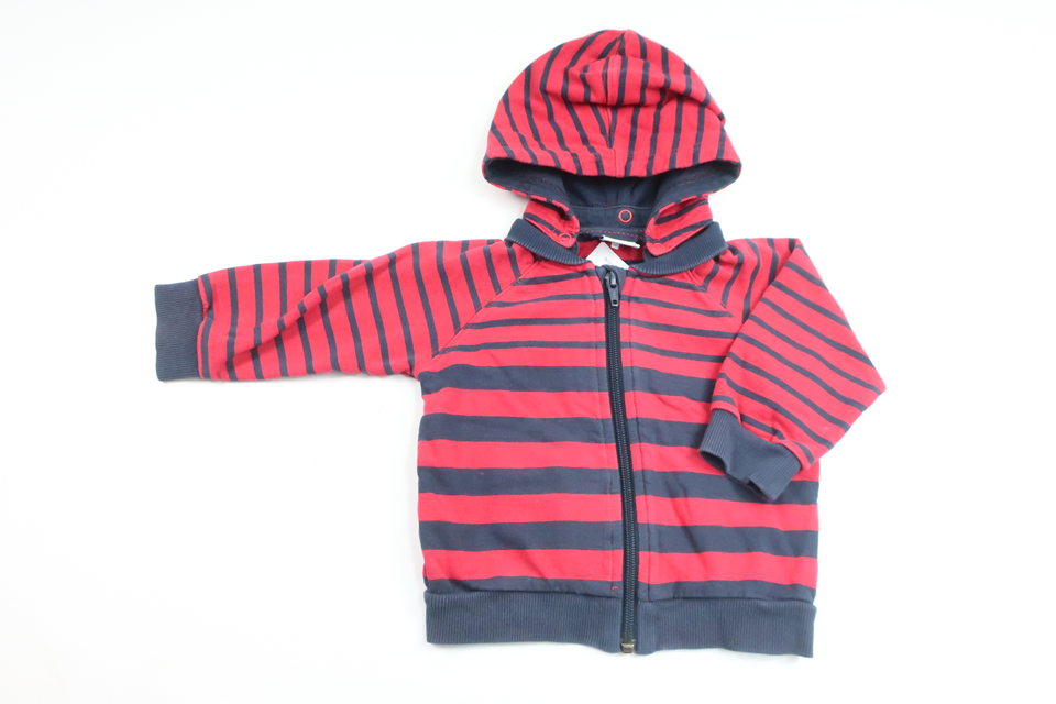 Stribet hættetrøje fra Polarn o. Pyret - Størrelse 74 - Rød