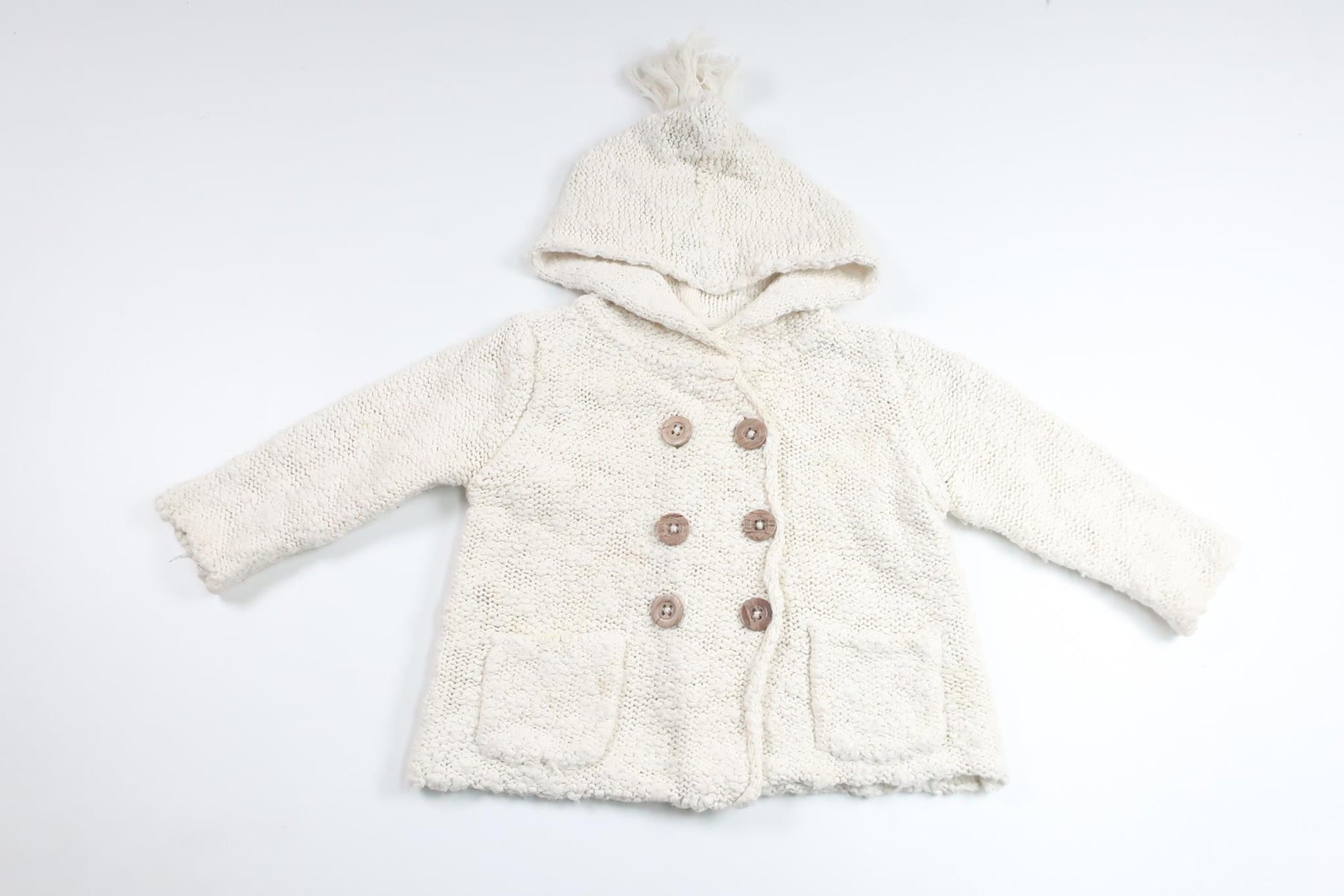 Strikket hættetrøje fra Next - Størrelse 74 - Off-white