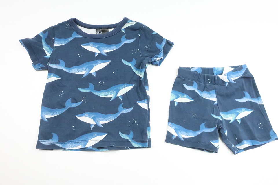 Todelt pyjamas med hvaler fra H&M - Størrelse 92 - Blå
