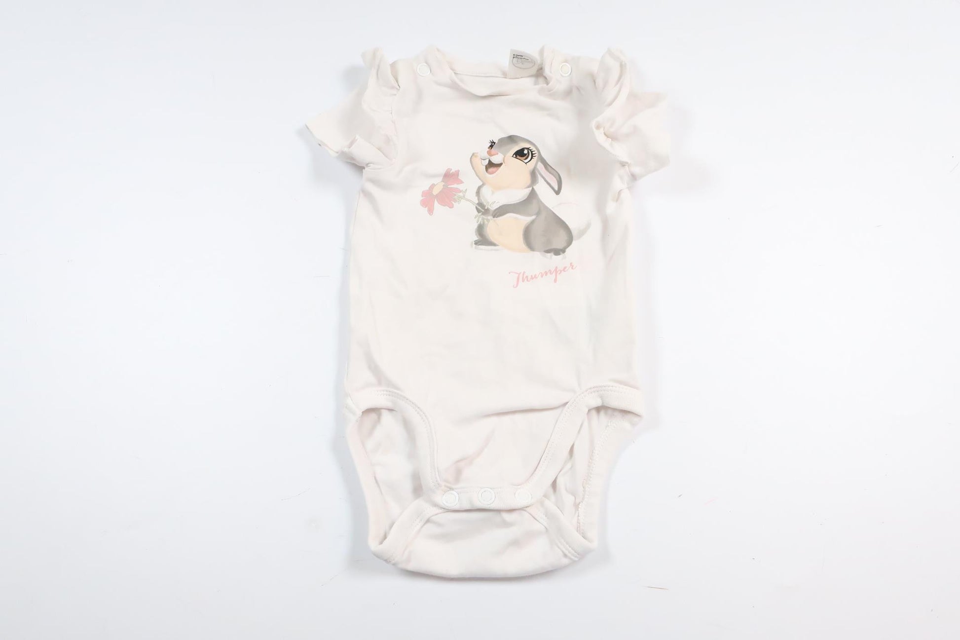 Hvid kortærmet bodysuit med kanin fra H&M i størrelse 56