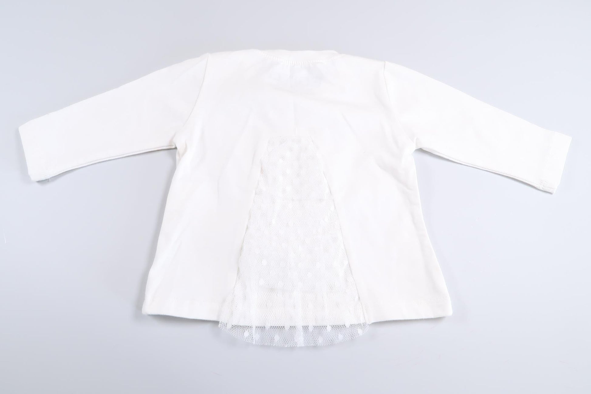 Hvid langærmet sweater med perler og blondedetaljer fra Ebito i størrelse 68